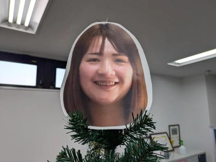 なんと、ツリーのてっぺんには、定番の“星”ではなく……管理者の顔がドカン!(笑)