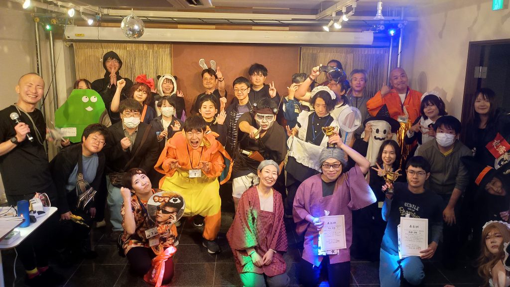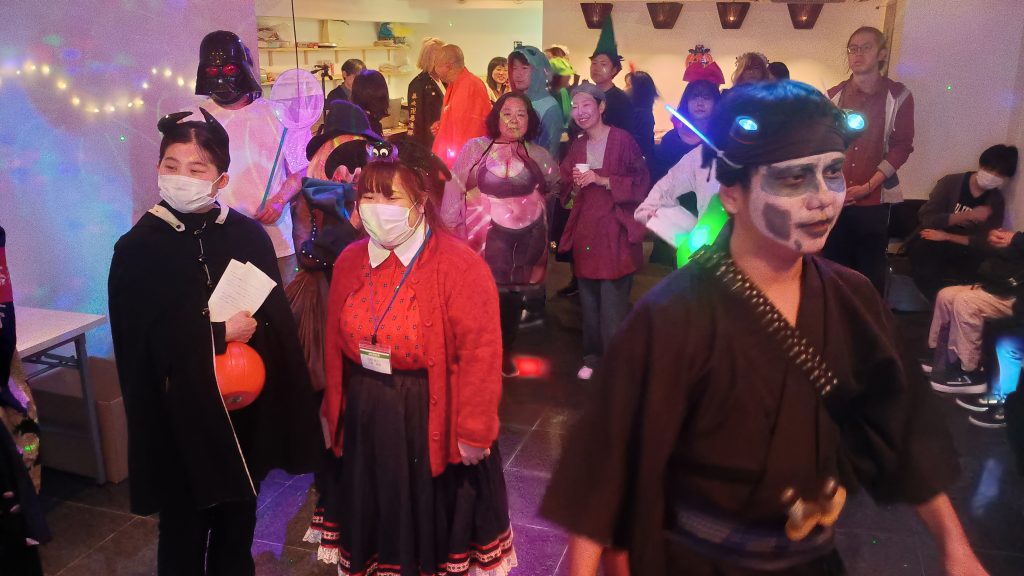 今年度も、ネストラボ京都・ネストラボ京都駅前・CRAワークサポートセンター・CRAワークサポートセンター四条の4事業所合同イベントとして実施。会場には40名以上の利用者さんが集まり、「仮装コンテスト」や「ゲーム対決」等で盛り上がり、終始にぎやかで笑顔のあふれる時間となりました。
